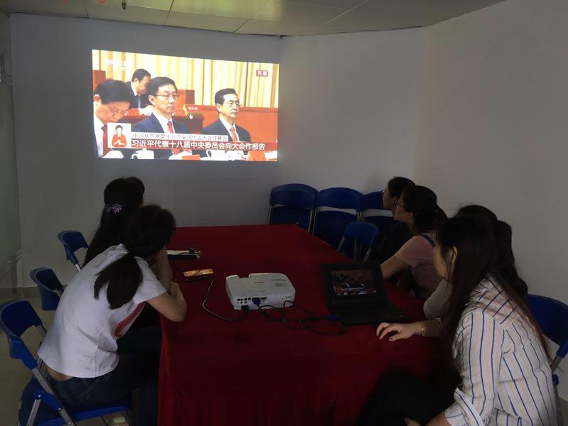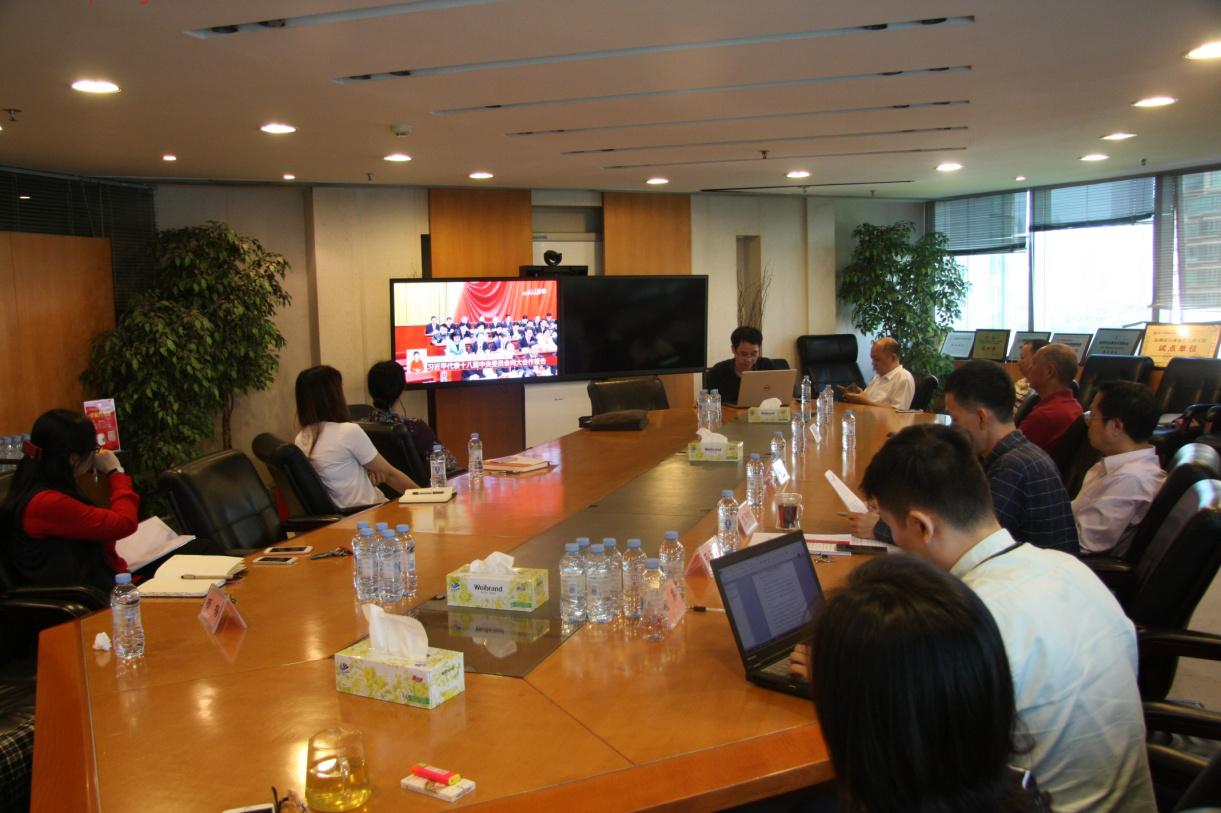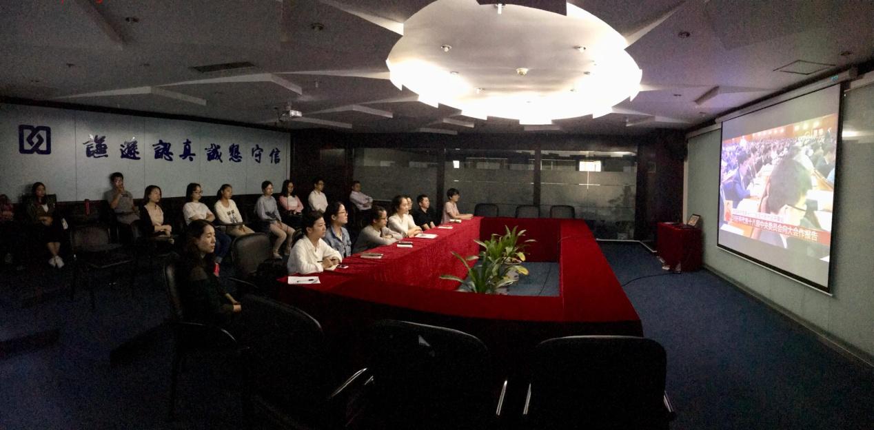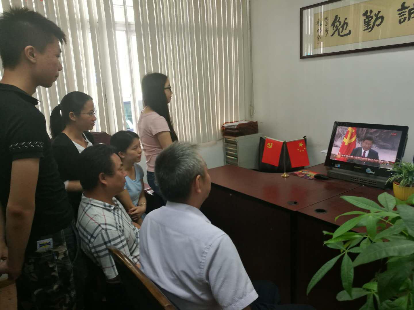(深圳市中洲会计师事务所有限公司党支部组织在岗党员和员工在事务所会议室集中收看开幕式)