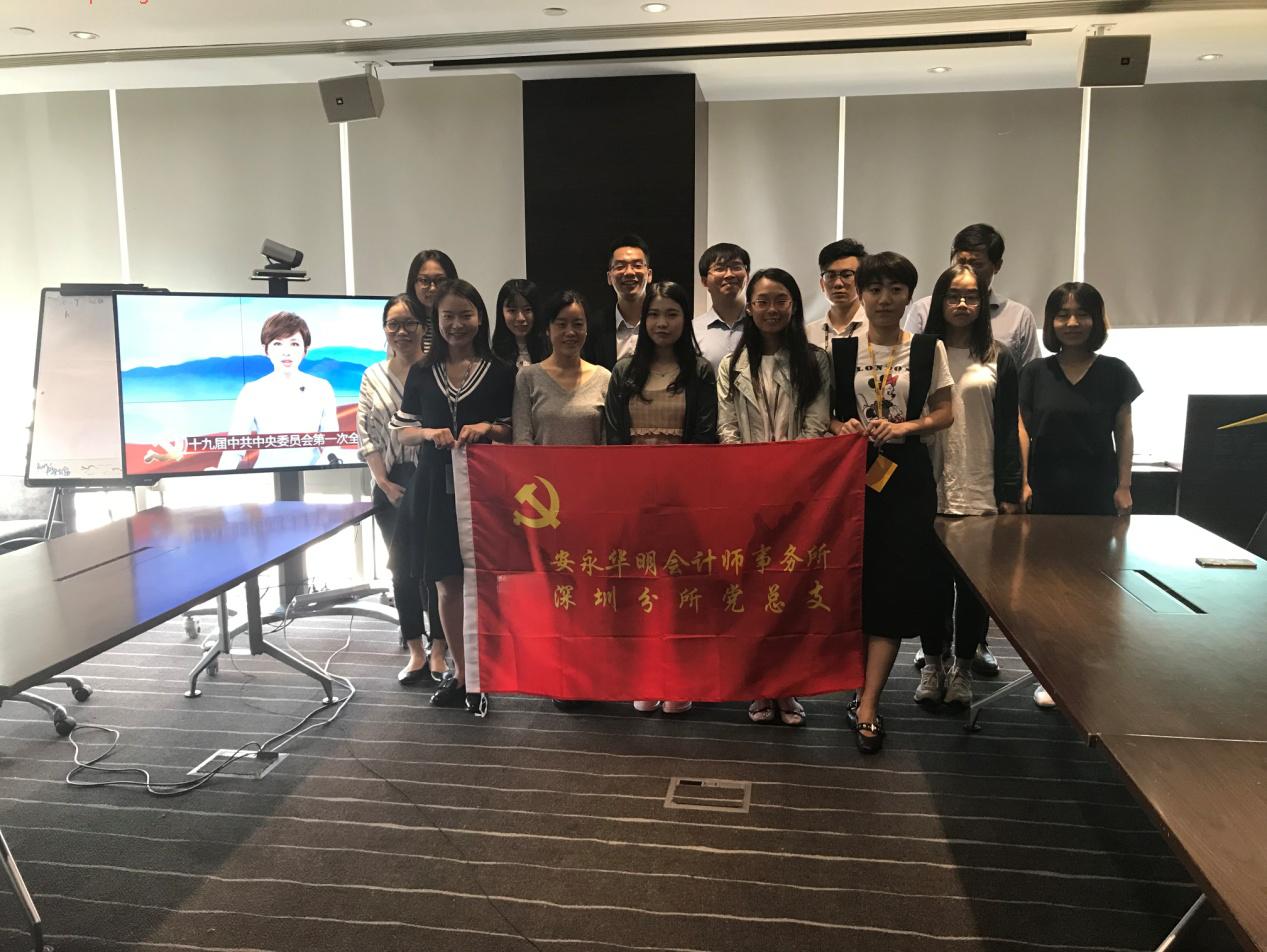 (安永华明会计师事务所深圳分所党总支组织在岗党员和员工在事务所会议室集中收看十九届中共中央政治局常委同中外记者见面会)