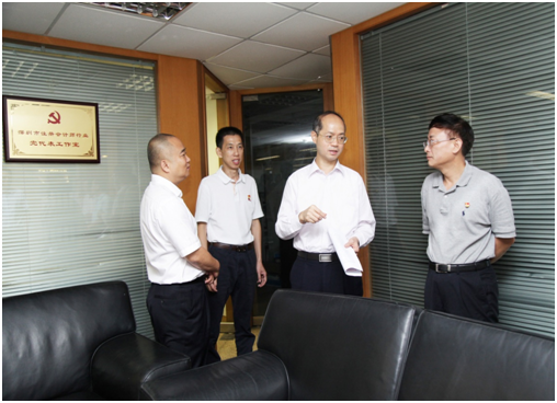 2016年9月2日,深圳市委常委、组织部部长郑轲同志率调研组到深圳市注册会计师行业党委(以下简称“行业党委”)调研。市两新组织党工委副书记、市民政局党委委员、市社会组织党委书记、市社会组织管理局局长凌冲同志,市两新组织党工委委员、市财政委党组成员、机关党委书记温焕强同志,市民政局党委副书记陈亚凯同志,市委组织部组织二处处长、市两新组织党工委办公室主任郑宏斌同志和市社会组织党委副书记、纪委书记肖卫国同志等领导陪同调研。
